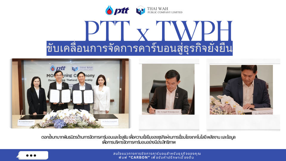 PTT จับมือ TWPH ร่วมบริหารจัดการคาร์บอน สู่เป้าหมาย Net Zero 2050
